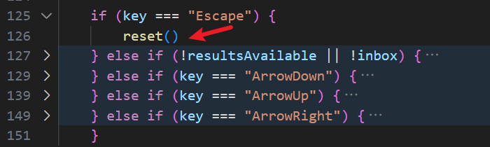 首先,当 key 键为 Escape 时,重置搜索内容,清空输入框,清空结果,光标回到输入框