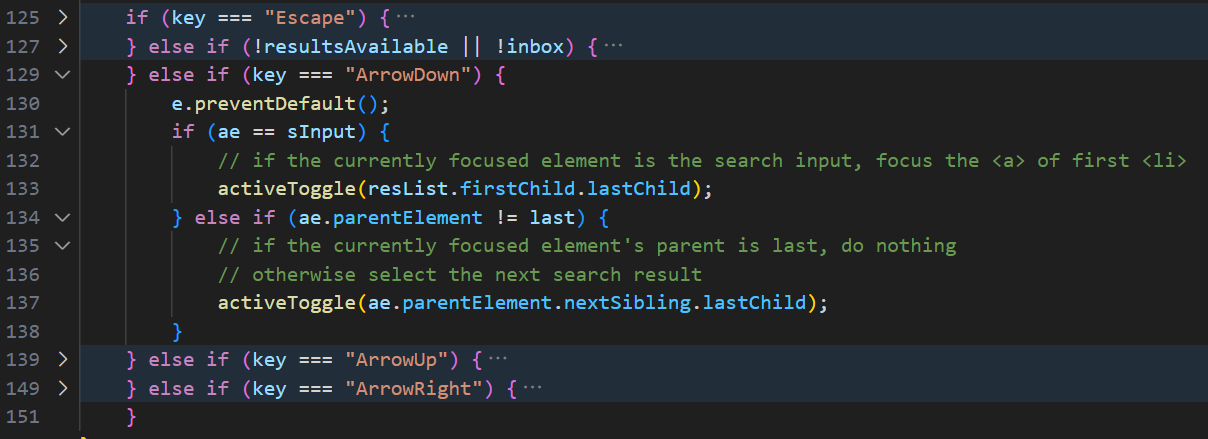 ae.parentElement != last),此时就通过activeToggle将焦点向下移动到下一个列表项<li>中的<a href>搜索结果链接