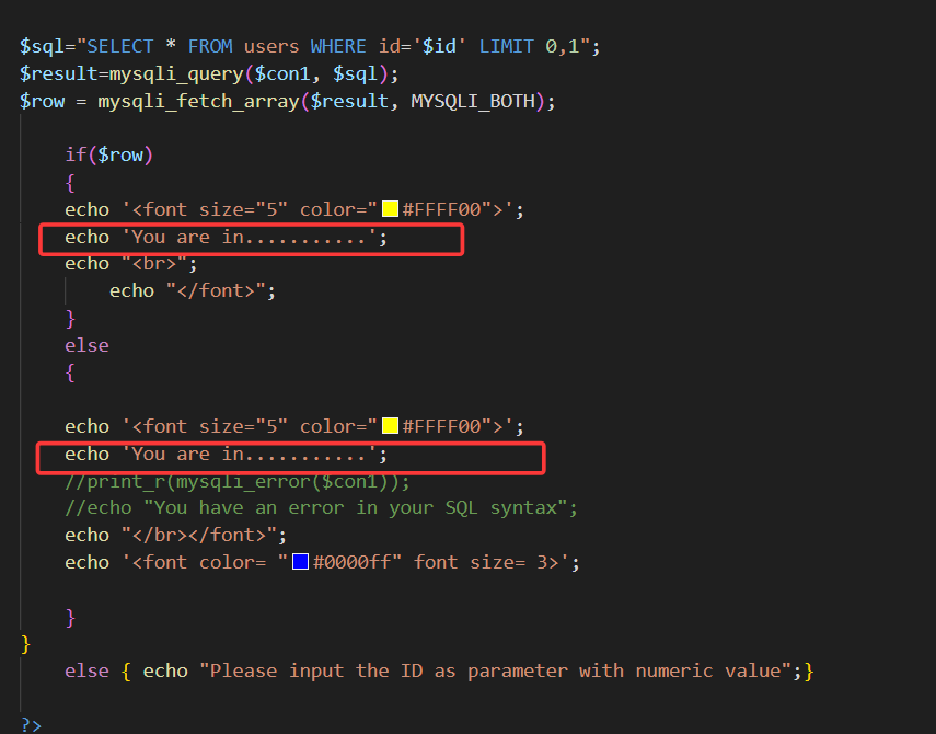 查看源码可以发现,无论语句为真还是假,都会返回"You are in.....",故无法使用布尔盲注