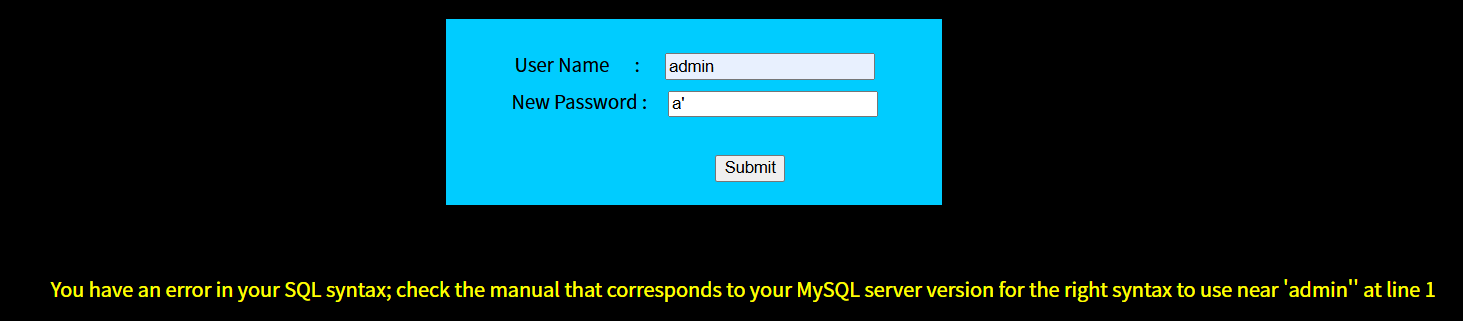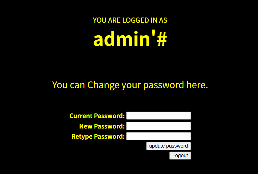 但因为我们的用户名后面有'#,系统会直接修改admin用户的账号密码,'#起到闭合语句并注释的作用