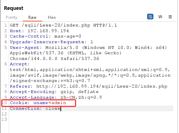这一关为cookie注入,首先得输入正确的账号密码,进行抓包
