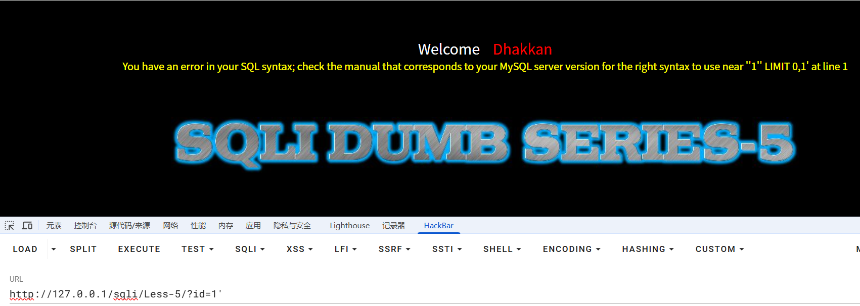 这一关连mysql报错信息都不显示了,闭合符查看源码可得为单引号