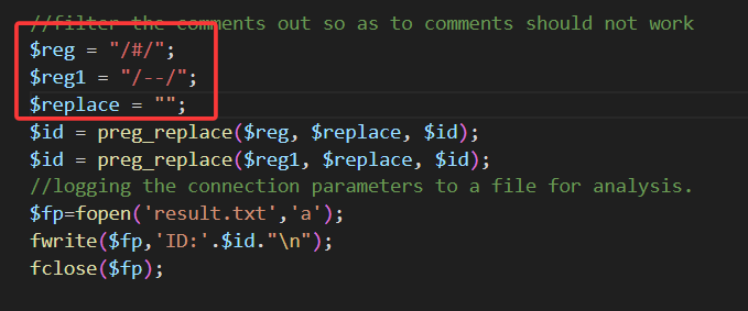 查看源码可以发现,它将我们的 # 和 -- 都替换为空,也就是让我们的注释符失效