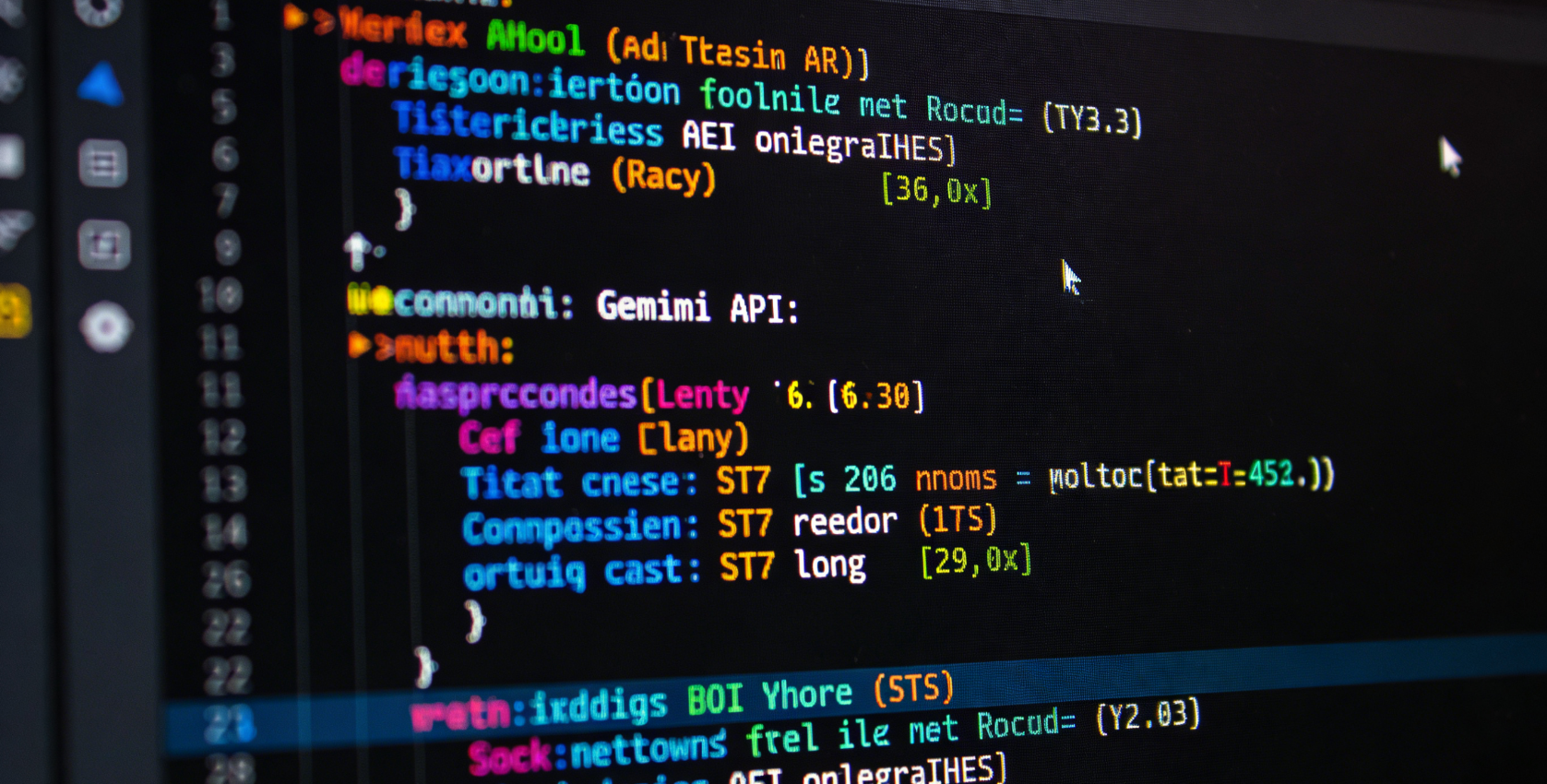 图片素材建议:一张代码截图,展示 Python 调用 Gemini API 的简洁代码,背景是黑色的 IDE 界面,高亮显示关键参数。