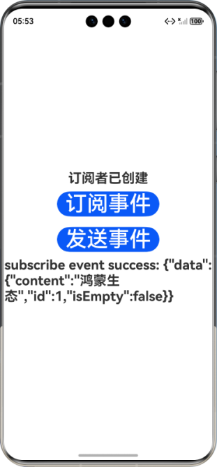 Text组件的显示内容,通过@State绑定了eventData变量。当evenData变量变化时,Text的显示内容也会实时更新。