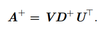 对角矩阵 D 的伪逆 D + 是其非零元素取倒数之后再转置得到的。