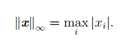 | L ∞ 范数 | 也被称为 最大范数这个范数表示向量中具有最大幅值的元素的绝对值: