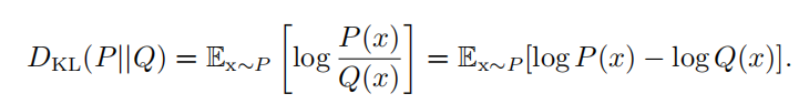 如果我们对于同一个随机变量 x 有两个单独的概率分布 P ( x ) 和 Q ( x ) ,我们可以使用 KL 散度 ( Kullback-Leibler (KL) divergence )来衡量这两个分布的差异: