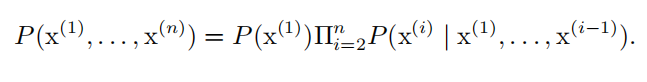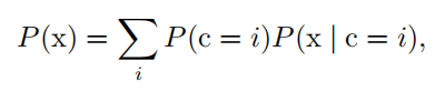 | 混合分布 ( mixture distribution ) | 混合分布由一些组件 (component) 分布构成。每次实验,样本是由哪个组件分布产生的取决于从一个 Multinoulli 分布中采样的结果: