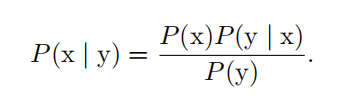 我们经常会需要在已知 P ( y | x ) 时计算 P ( x | y ) 。幸运的是,如果还知道 P ( x ) ,我们可以用 贝叶斯规则 ( Bayes' rule )来实现这一目的: