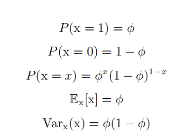 | Bernoulli 分布 ( Bernoulli distribution ) | 具有如下性质: