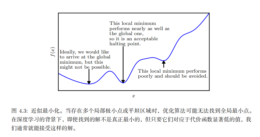 使 f ( x ) 取得绝对的最小值(相对所有其他值)的点是 全局最小点 ( global minimum)。函数可能只有一个全局最小点或存在多个全局最小点,还可能存在不是全局最优的局部极小点。