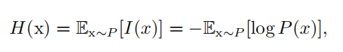 - I(x) 单位:奈特**(nats** )。一奈特是以 1 e的概率观测到一个事件时获得的信息量。