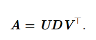 对角矩阵 D 对角线上的元素被称为矩阵 A 的 奇异值 ( singular value )。矩阵 U 的列向量被称为 左奇异向量 ( left singular vector ),矩阵 V 的列向量被称 右奇异向量( right singular vector )。