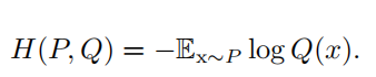 一个和 KL 散度密切联系的量是 交叉熵 ( cross-entropy ) H ( P, Q ) = H ( P ) + D KL ( P || Q ) ,它和 KL 散度很像但是缺少左边一项: