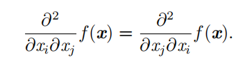 微分算子在任何二阶偏导连续的点处可交换,也就是它们的顺序可以互换: