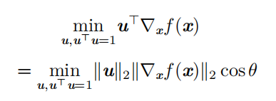 为了最小化 f ,我们希望找到使 f 下降得最快的方向。计算方向导数: