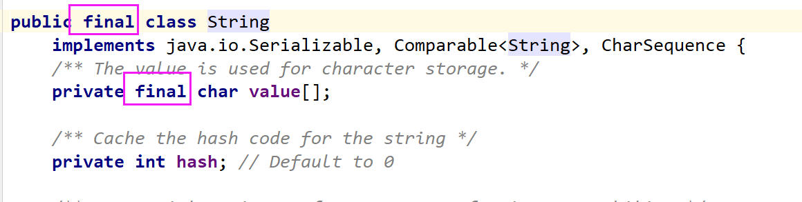 value数组被final修饰,表明value自身的值不能改变,即不能引用其他字符数组。
