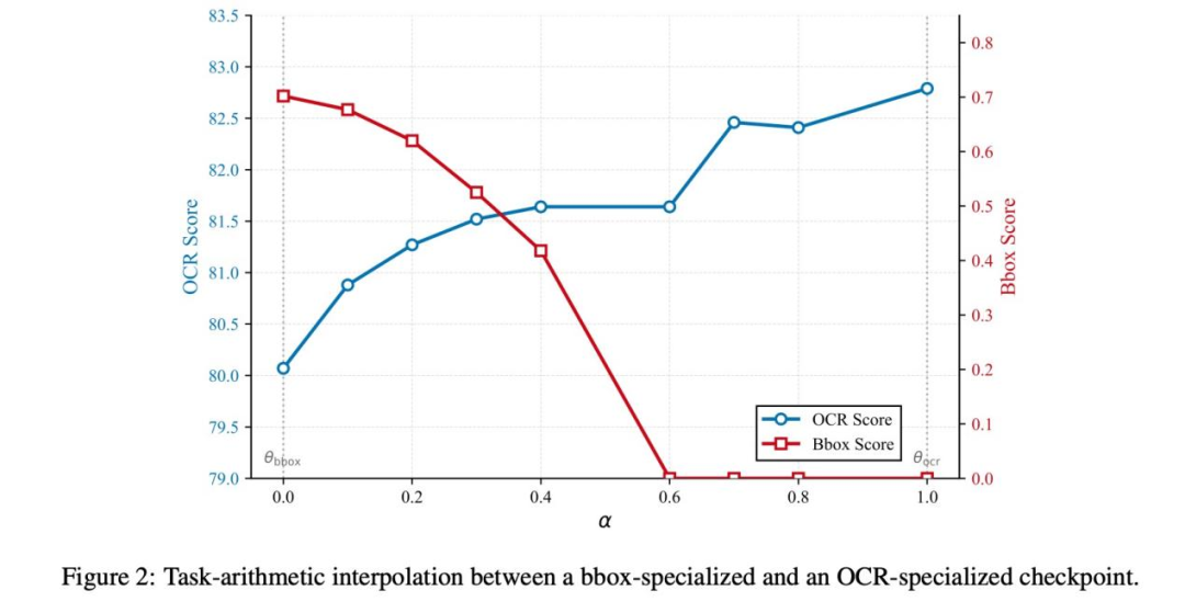 同时优化OCR和图像定位两个任务可能相互冲突。LightOn团队采用任务算术合并技术解决了这一难题: