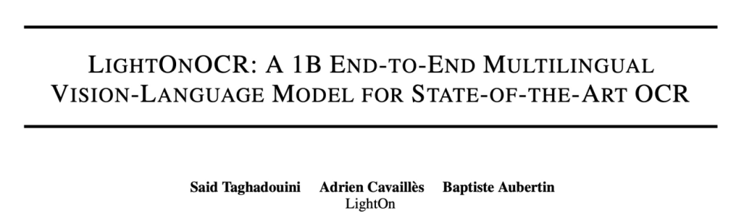最近,法国AI公司LightOn在文档理解领域投下了一枚重磅炸弹------他们推出的LightOnOCR-2-1B模型仅凭10亿参数,就在权威OCR评测基准OlmOCR-Bench上击败了参数量大它9倍的竞争对手,登顶SOTA宝座。