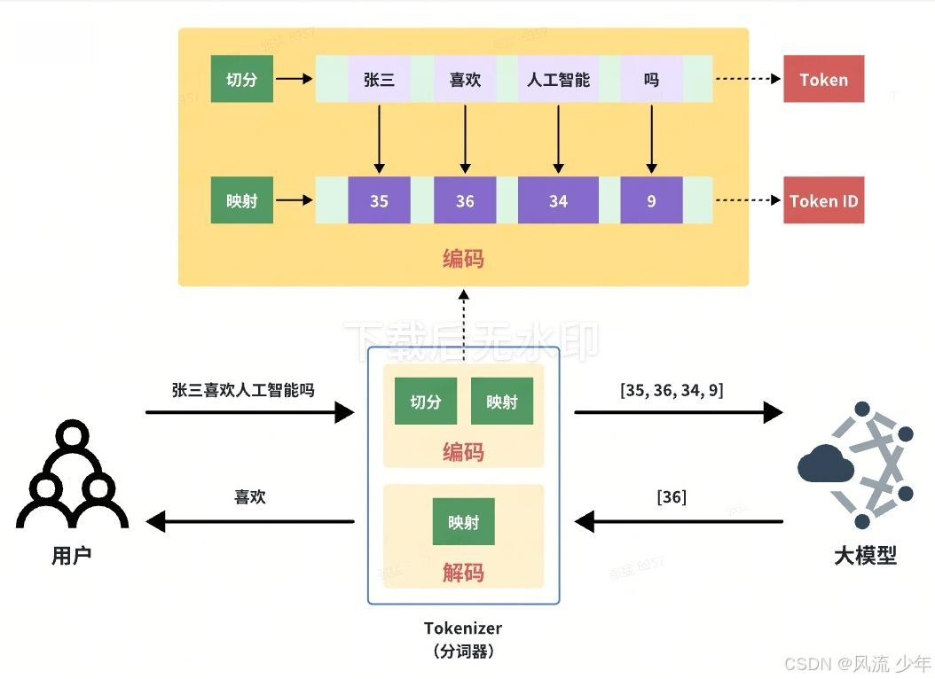 大模型本质是一个巨大的"数学函数",内部全是矩阵运算,输入是数字([35,36,34,10]),输出也是"数字"([36]),根本不理解人类的文字。