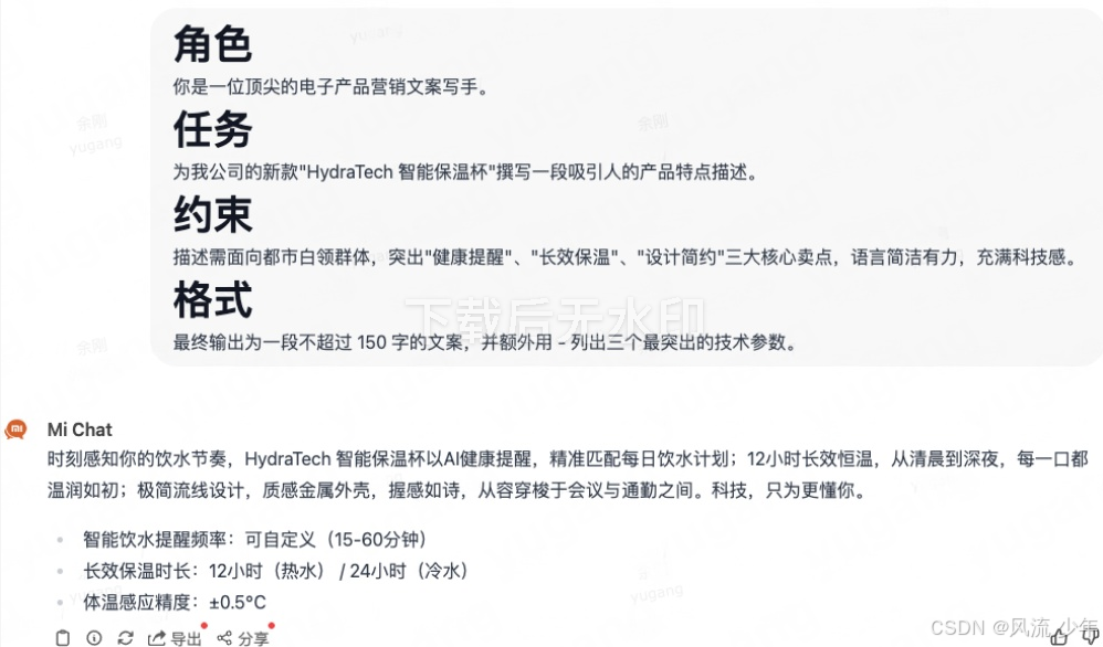 显然,优化后的提示词能引导 AI 生成更符合商业用途的高质量文案。