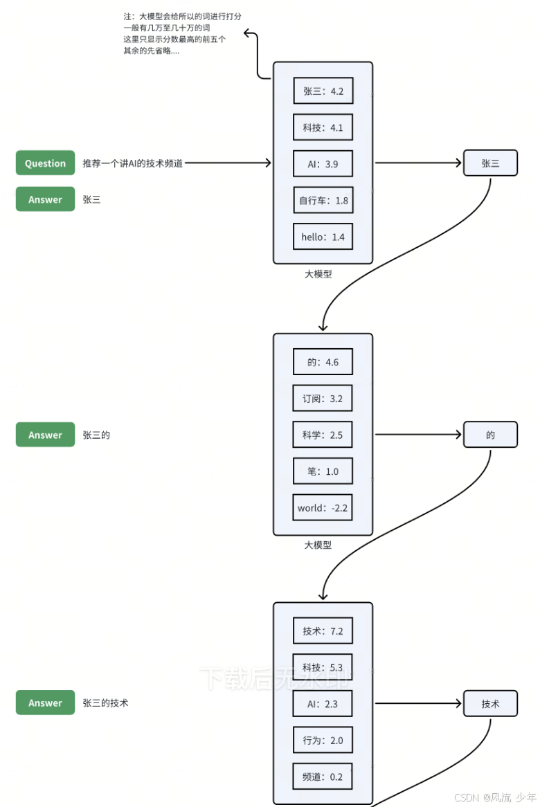虽然大模型的内部结构无比复杂,但是它执行的核心任务其实非常朴素,那就是"预测下一个最有可能出现的词"