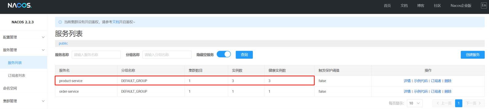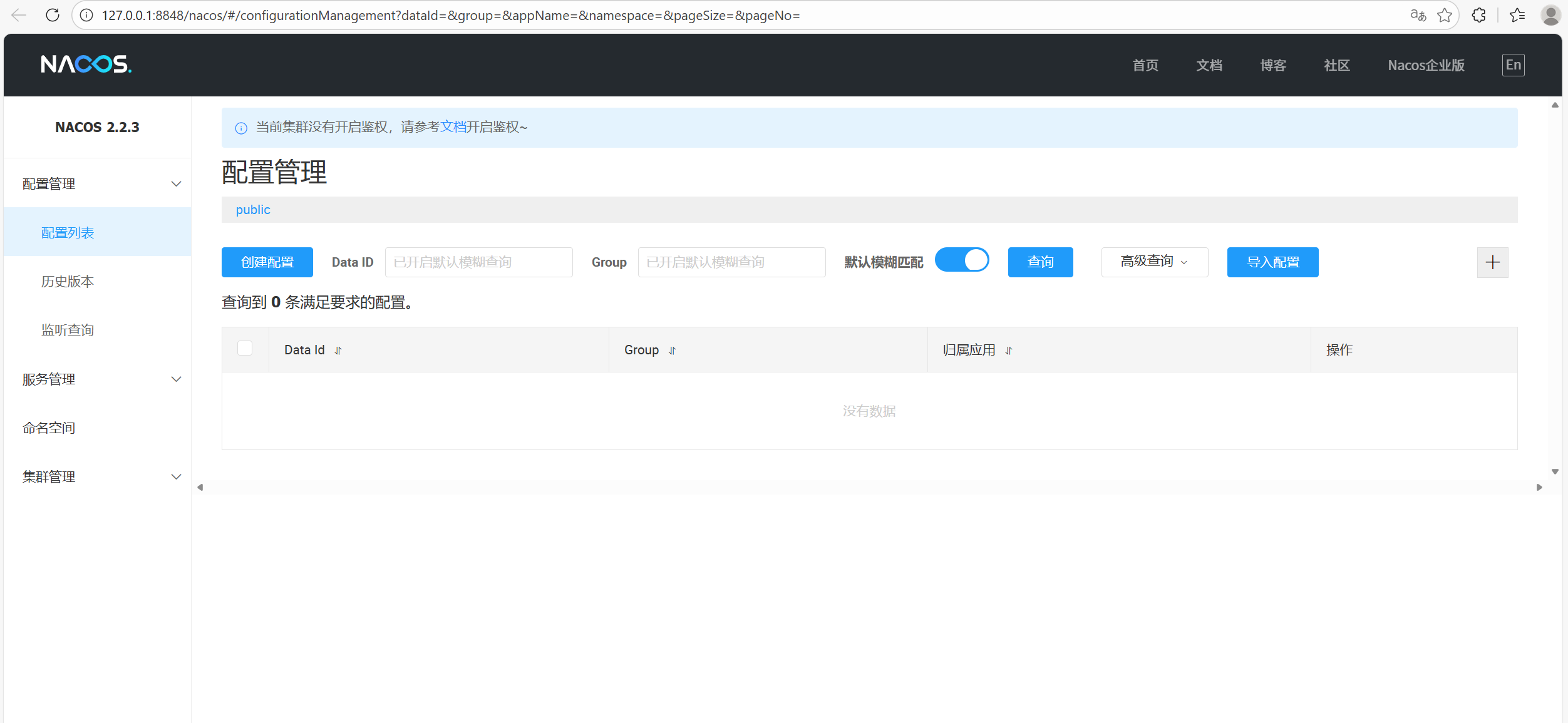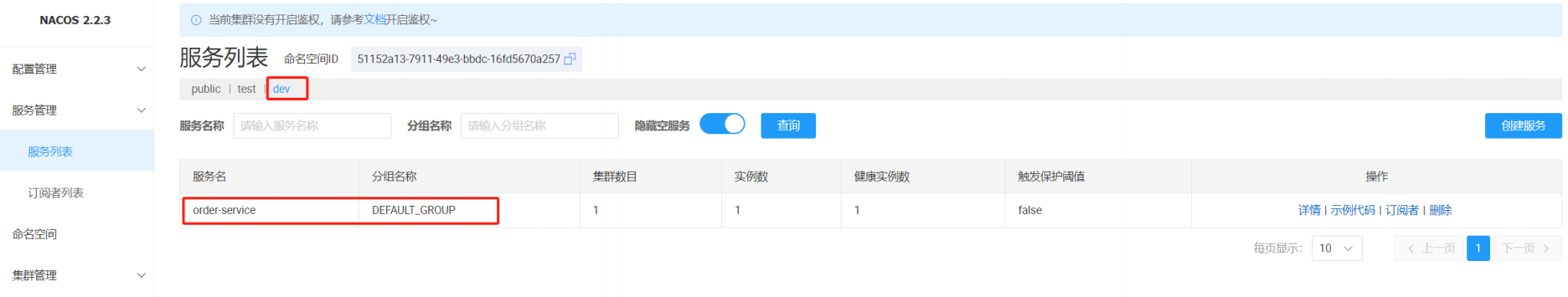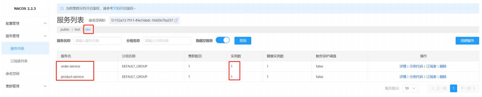注意: 配置管理的命名空间和服务列表的命名空间是隔离的, 两个是分别设置的. 默认是public也就是服务管理命名空间配置 ≠ 配置管理的命名空间