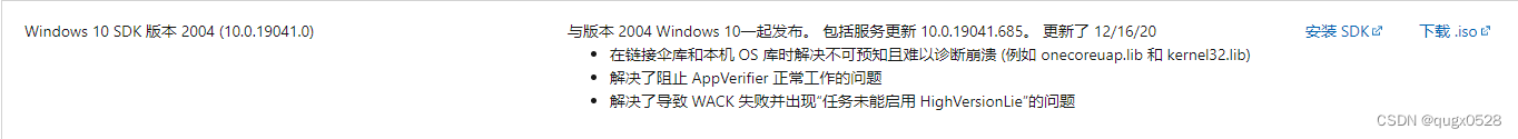 从官网下载 合适的 Windows 10 SDK 版本。这里我们选用的是.iso格式的。