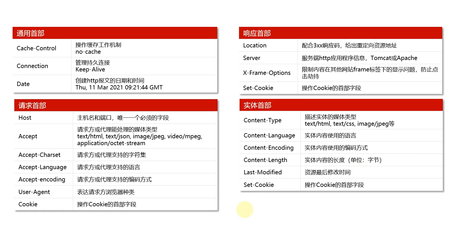 HTTP首部字段是请求和响应中携带的元数据,它们为通信提供了丰富的上下文信息。首部字段可以分为几类:通用首部、请求首部、响应首部和实体首部。