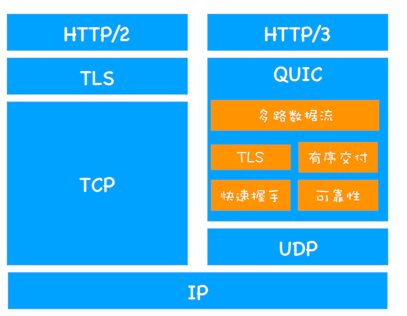 HTTP/3的真正革命在于它放弃了TCP,转而基于QUIC协议。QUIC协议直接构建在UDP之上,并内置了TLS 1.3加密。