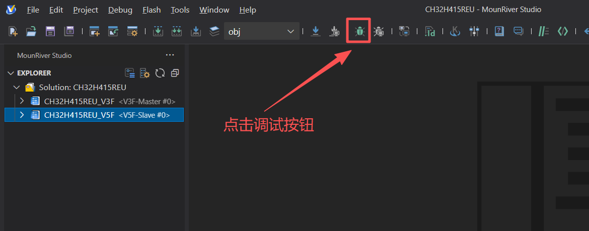 2.MRS2已经默认配置好所有的调试参数,无需更改。只要选择想要调试的工程后,点击调试按钮即可。
