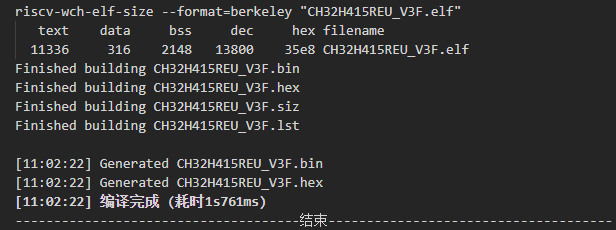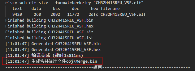 使用默认配置编译V5F核后,除了V5F核工程的可执行文件之外,会生成双核工程的合并输出文件Merge.bin,位于V5F工程的obj文件夹内。