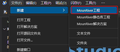 1.文件菜单点击新建->MounRiver工程,打开工程创建窗口。