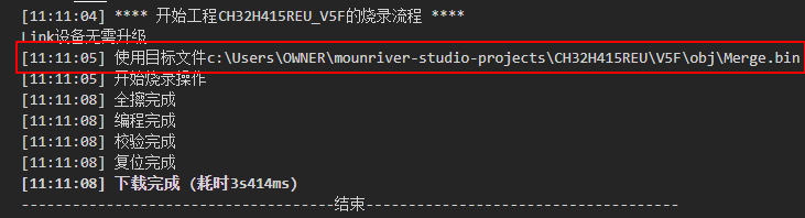 点击下载按钮,即可使用合并输出文件Mergin.bin进行下载。下载成功完成如下图所示。