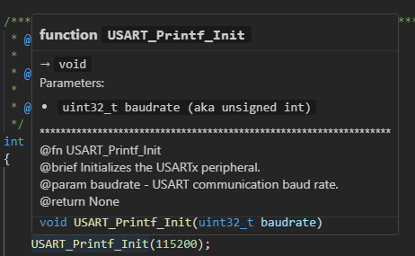 悬停在函数名上时,可以展示函数的签名、参数列表和返回值类型、函数相关注释和函数声明。