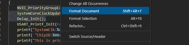 在代码编辑窗口右键菜单点击Format Document可通篇格式化,选中部分代码,右键菜单点击Format Seletion可对选中部分代码格式化。