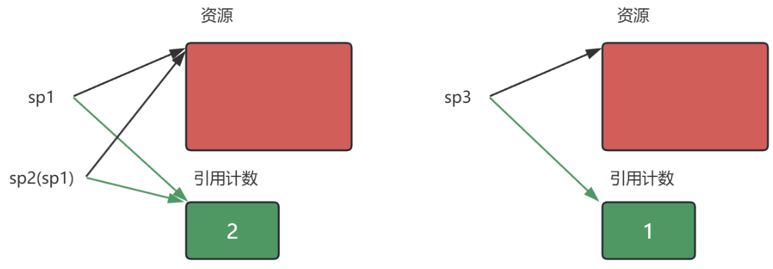 // sp1和sp2都指向了其他资源,则weak_ptr就过期了