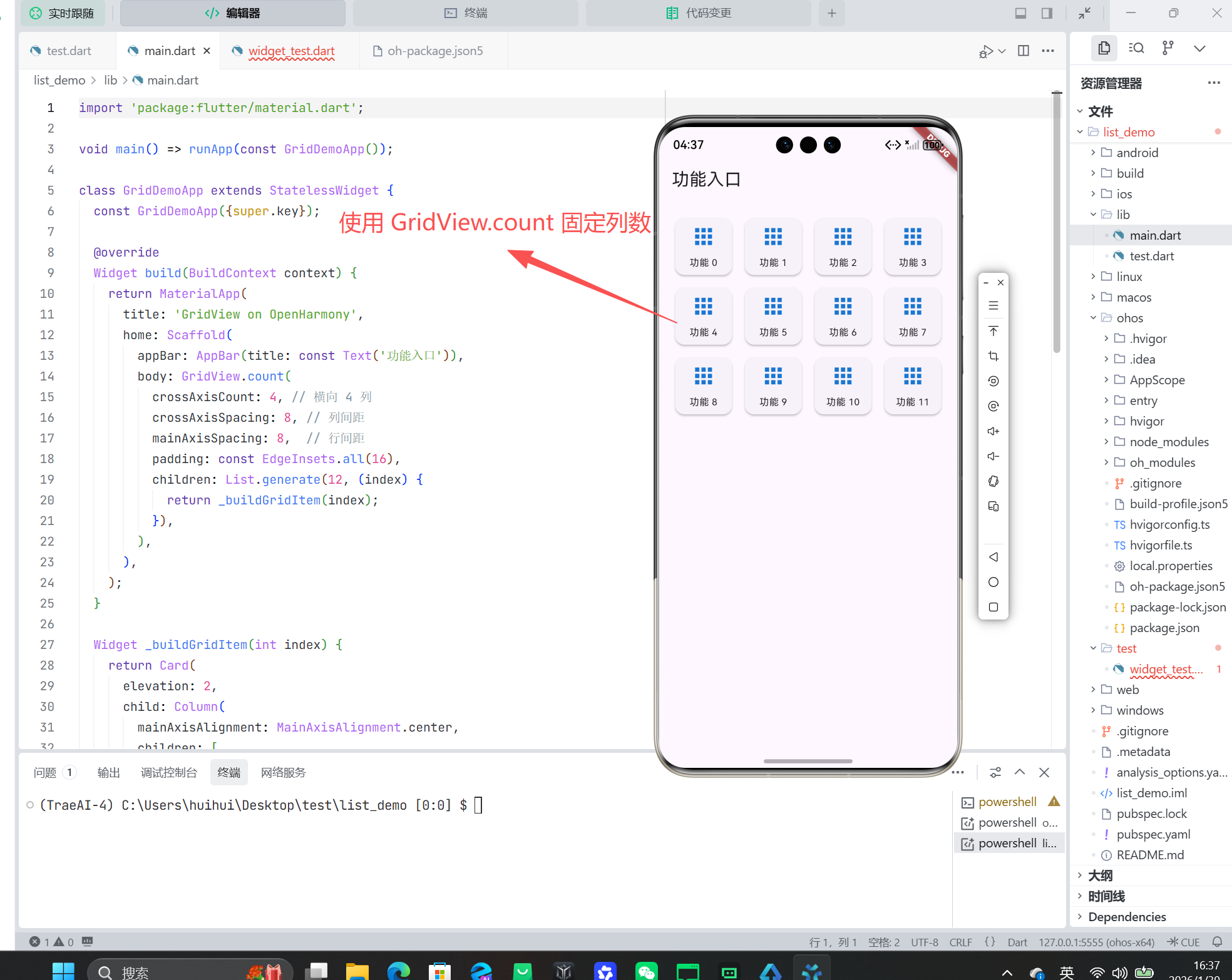 因此,只要你的 Flutter 版本 ≥ 3.19(官方支持 OpenHarmony 的起始版本),GridView 即可直接用于鸿蒙项目。