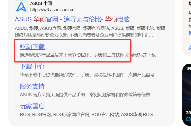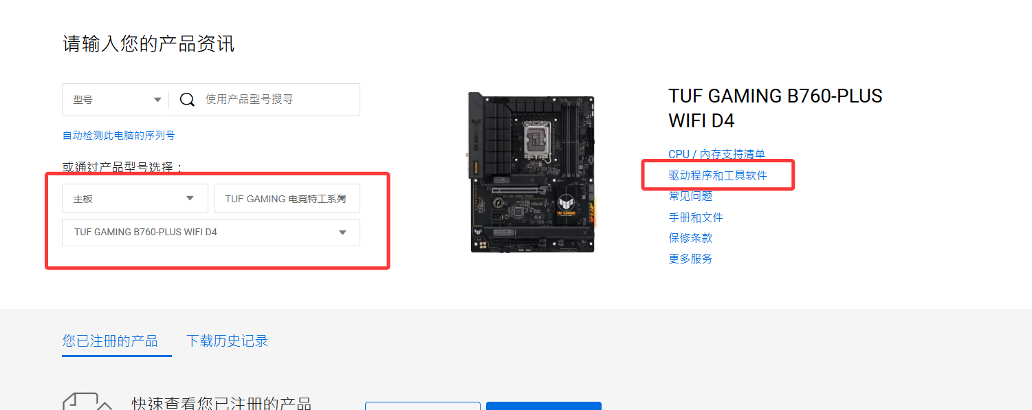 3.确定主机主板型号:如华硕台机,登陆官网,点击驱动下载