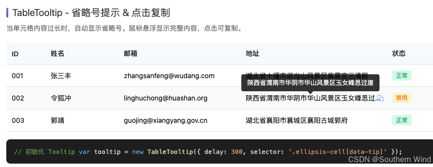 // 2. TableTooltip - 省略号提示