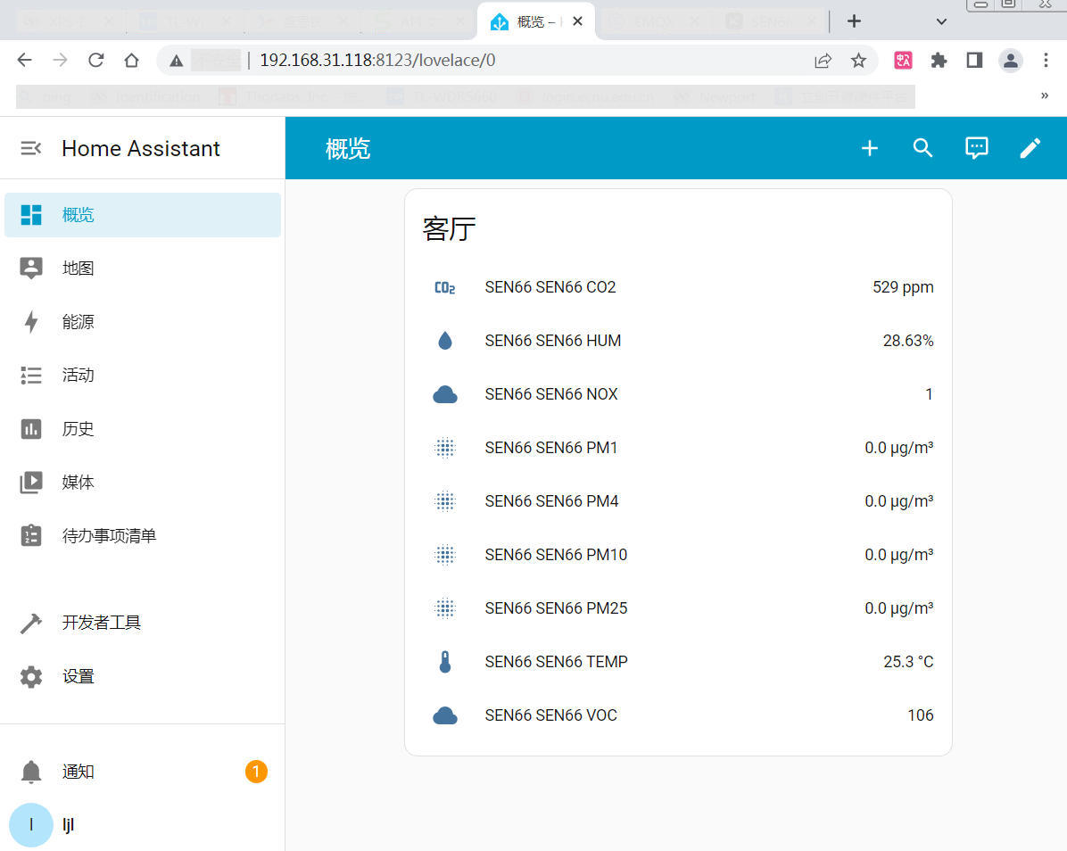 - Home Assistant:通过 MQTT 集成,实现 SEN66 传感器数据卡片自动获取,实现物联网环境气体监测。