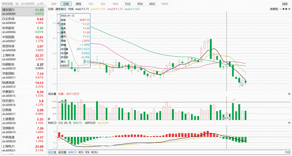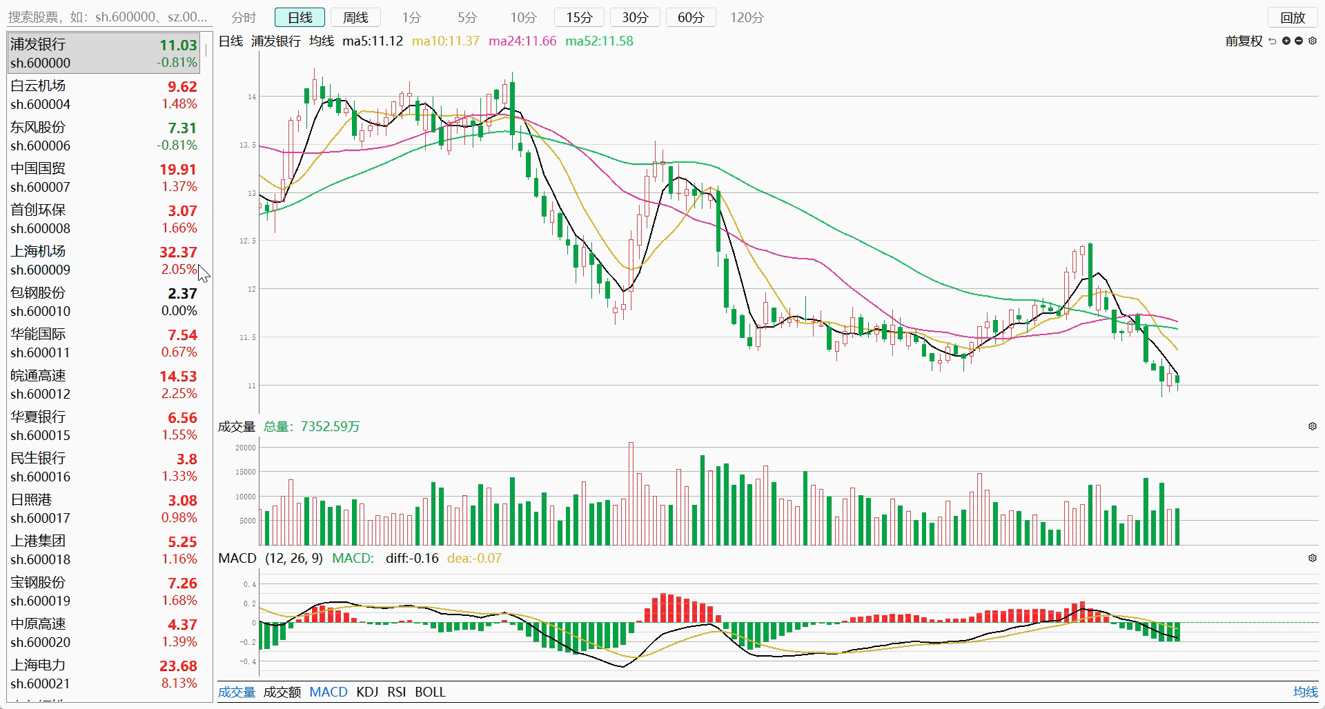 首先看一下主流的看盘行情软件(如:同花顺、东方财富、通信达等)的效果: