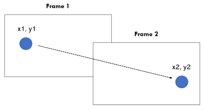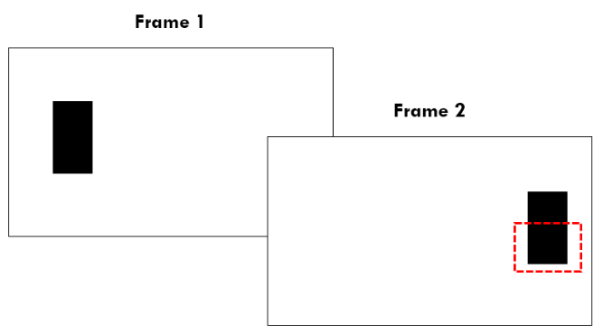 例如,下图显示了两个相邻的视频帧,每个帧中都有一个黑色像素组成的矩形块。在第一帧中,该像素块位于图像的左侧;在第二帧中,它移动到了右侧。