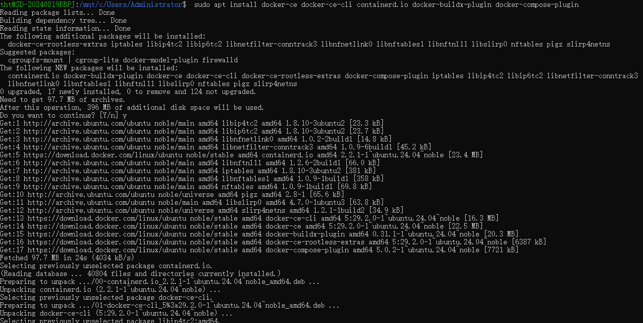 sudo apt install docker-ce docker-ce-cli containerd.io docker-buildx-plugin docker-compose-plugin