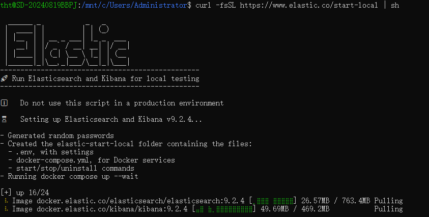 改为用:curl -fsSL https://www.elastic.co/start-local | sh