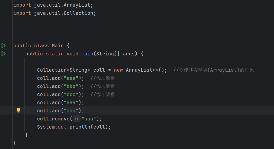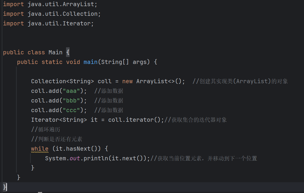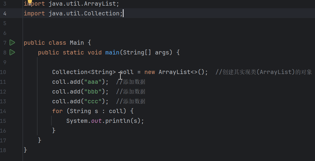 注意:我们在使用集合时是不能创建接口的对象的,只能创建其实现类的对象。