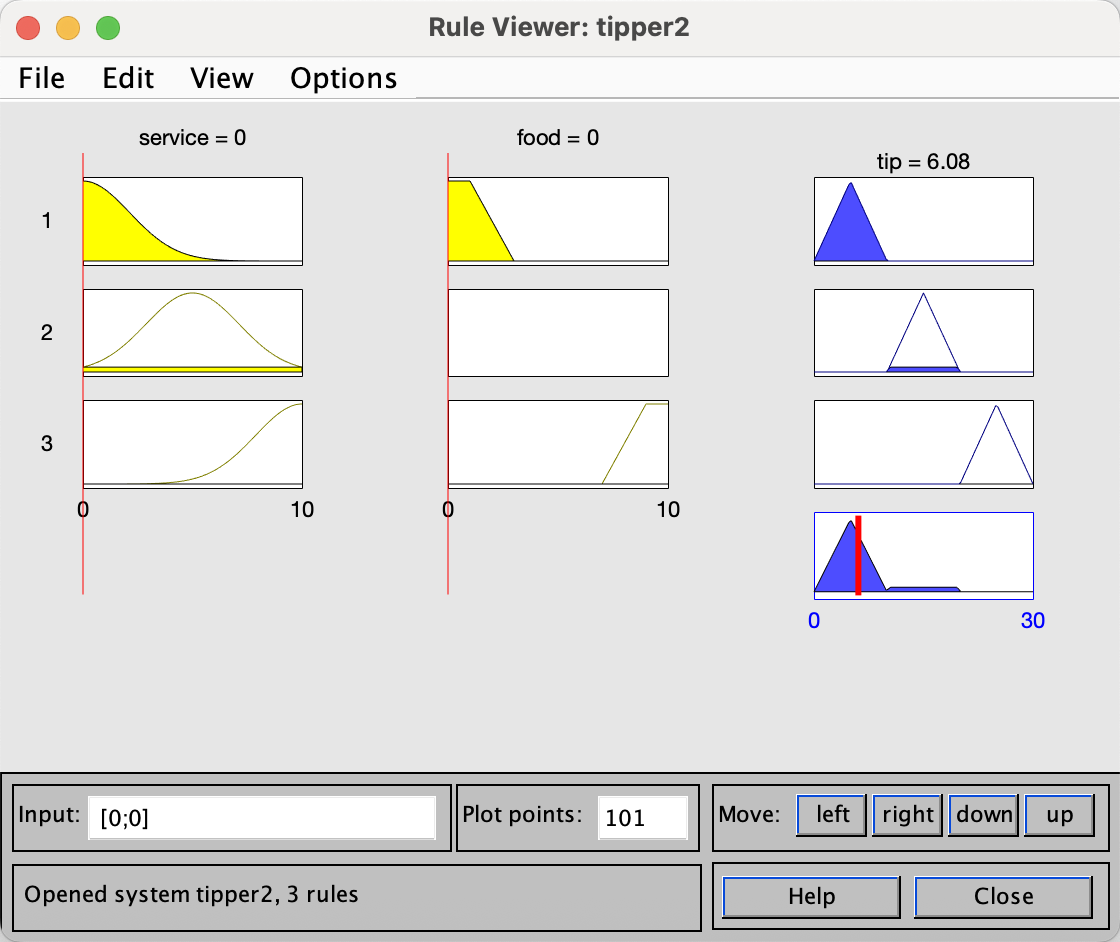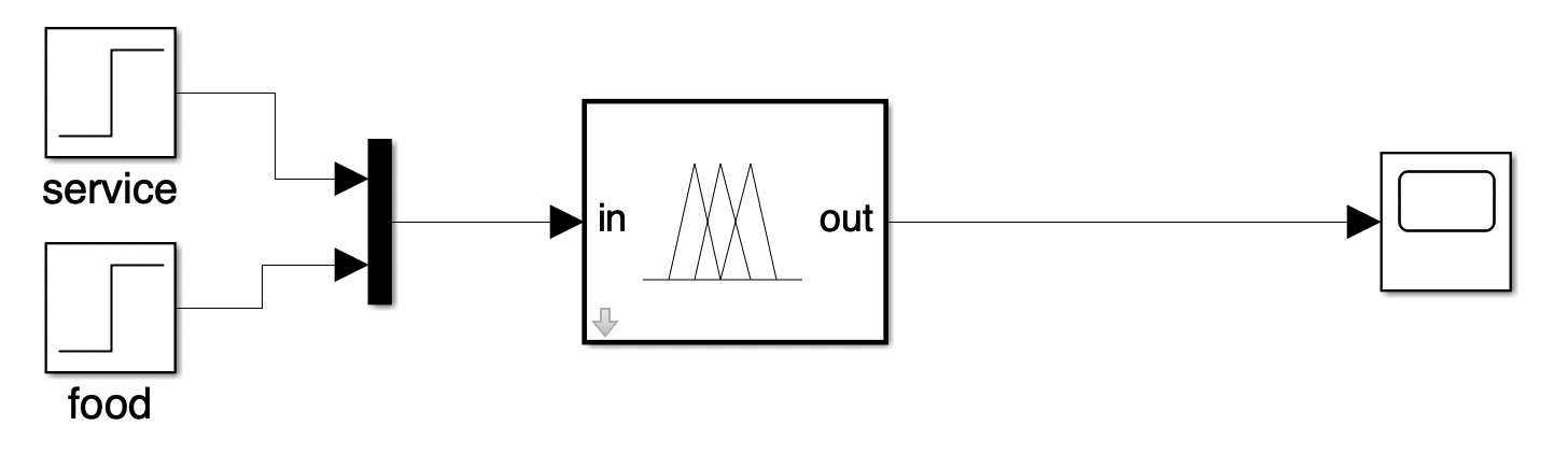 通过仿真曲线可以看出,前10s,service与food均为0,输出6.08的小费。